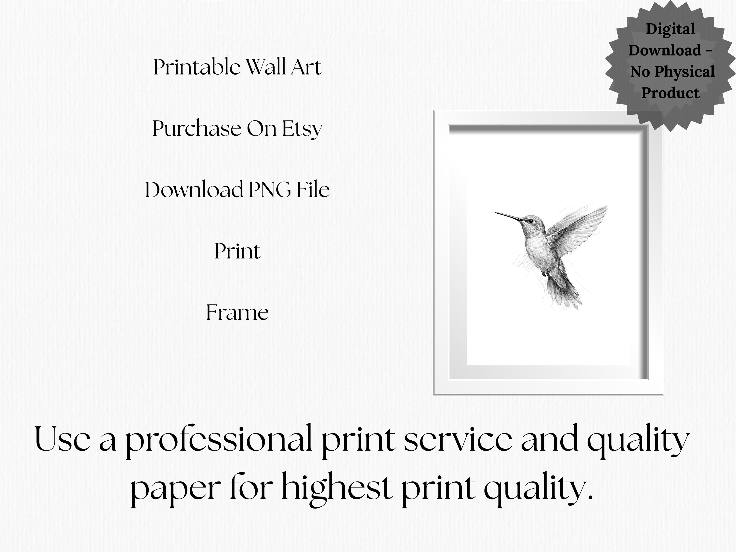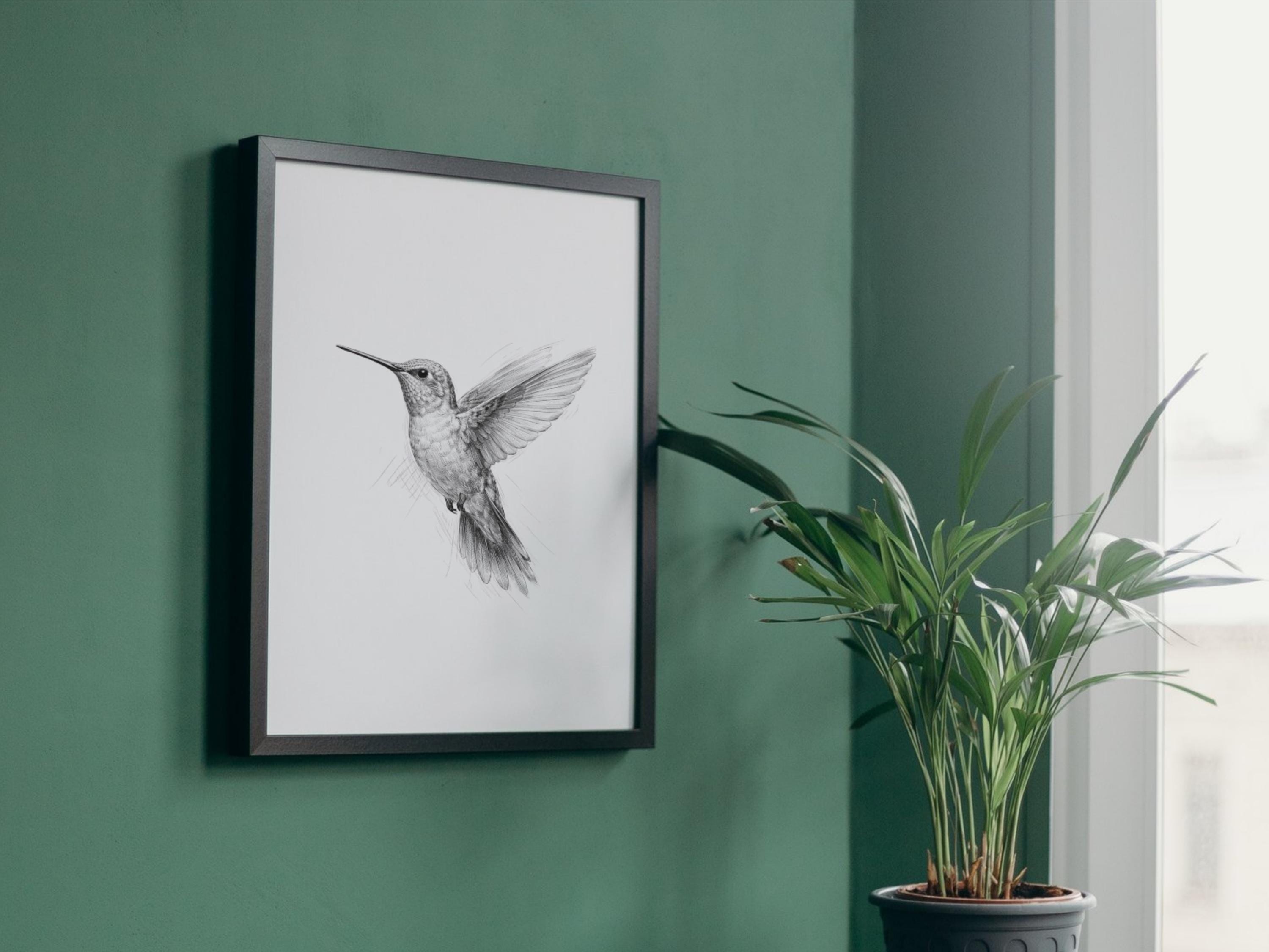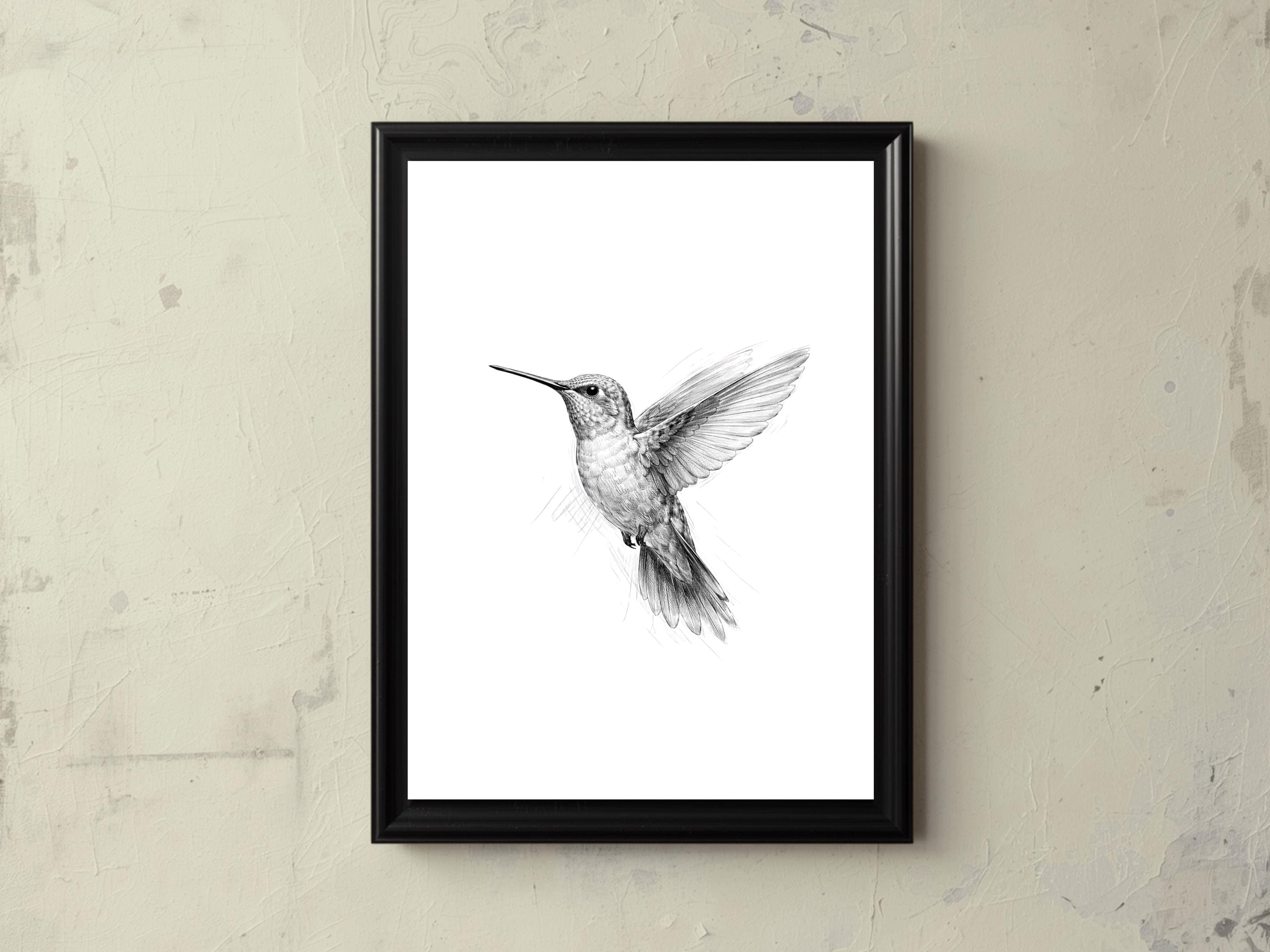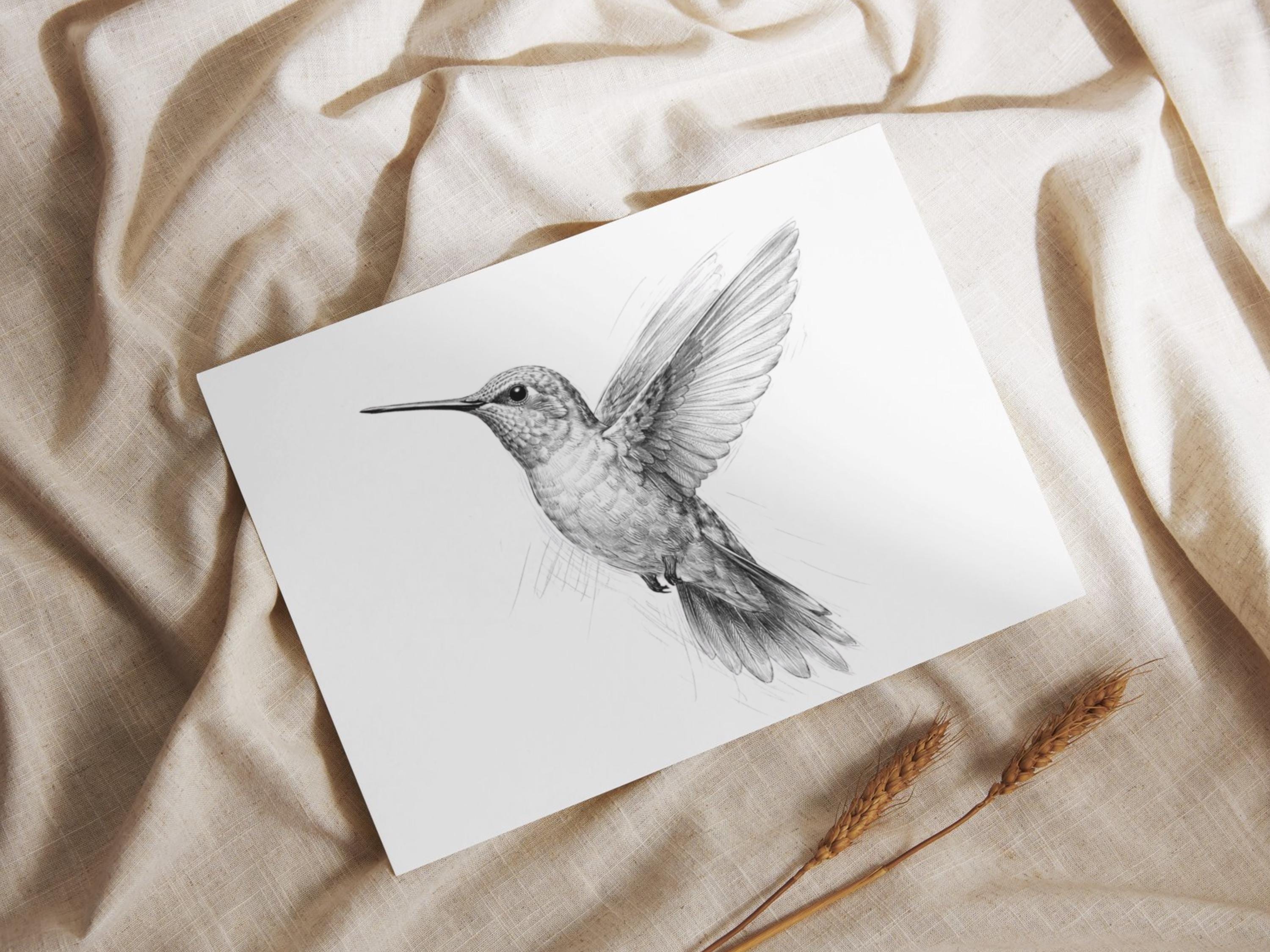 A simple digital print of a hummingbird.Designed to be printed on 8.5 x 11 paper.Use a professional printer and high-quality paper for best results.