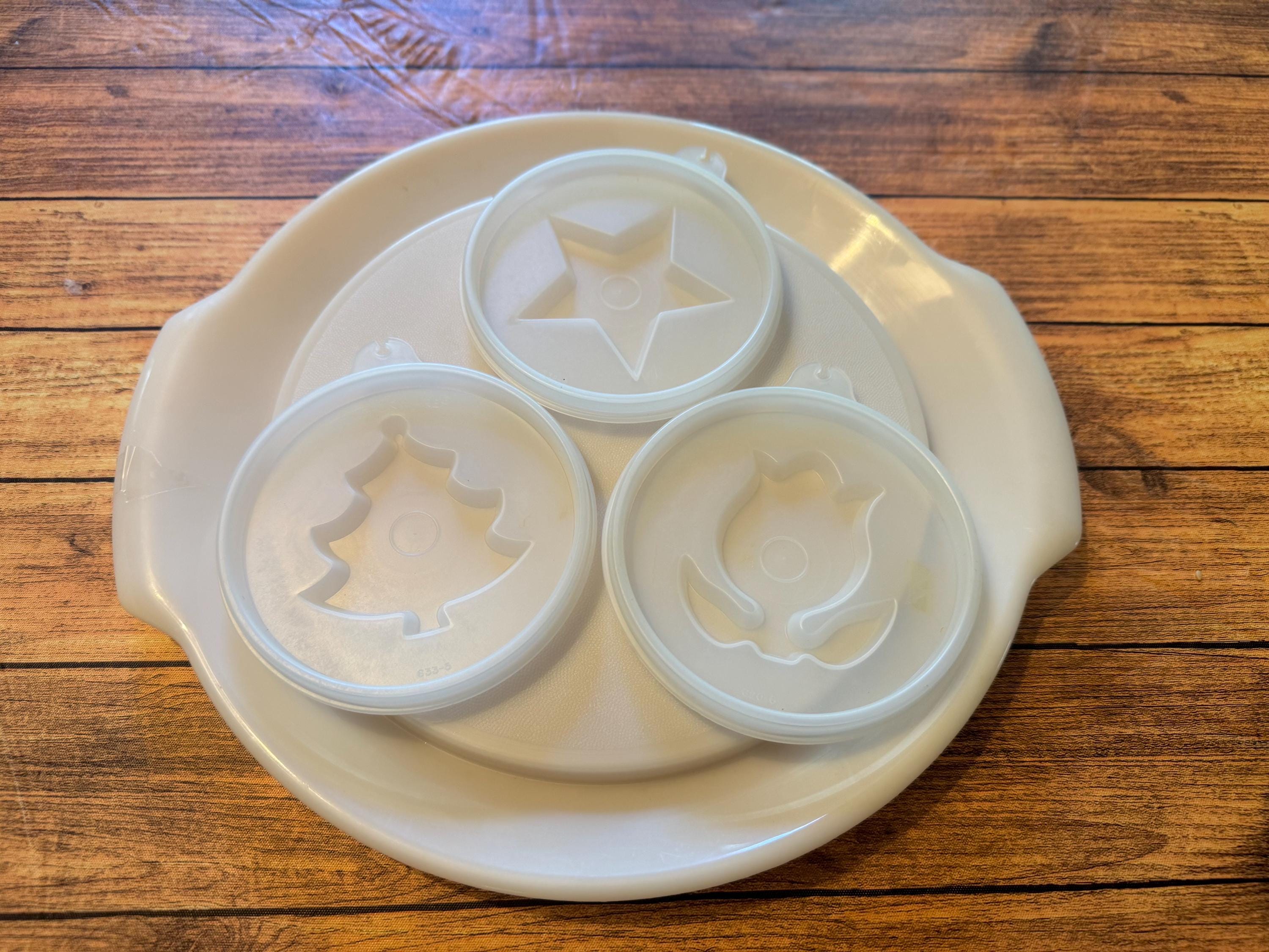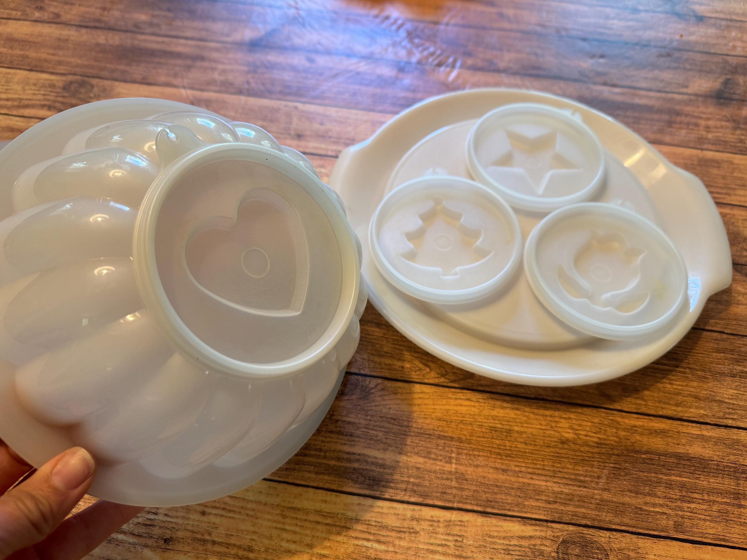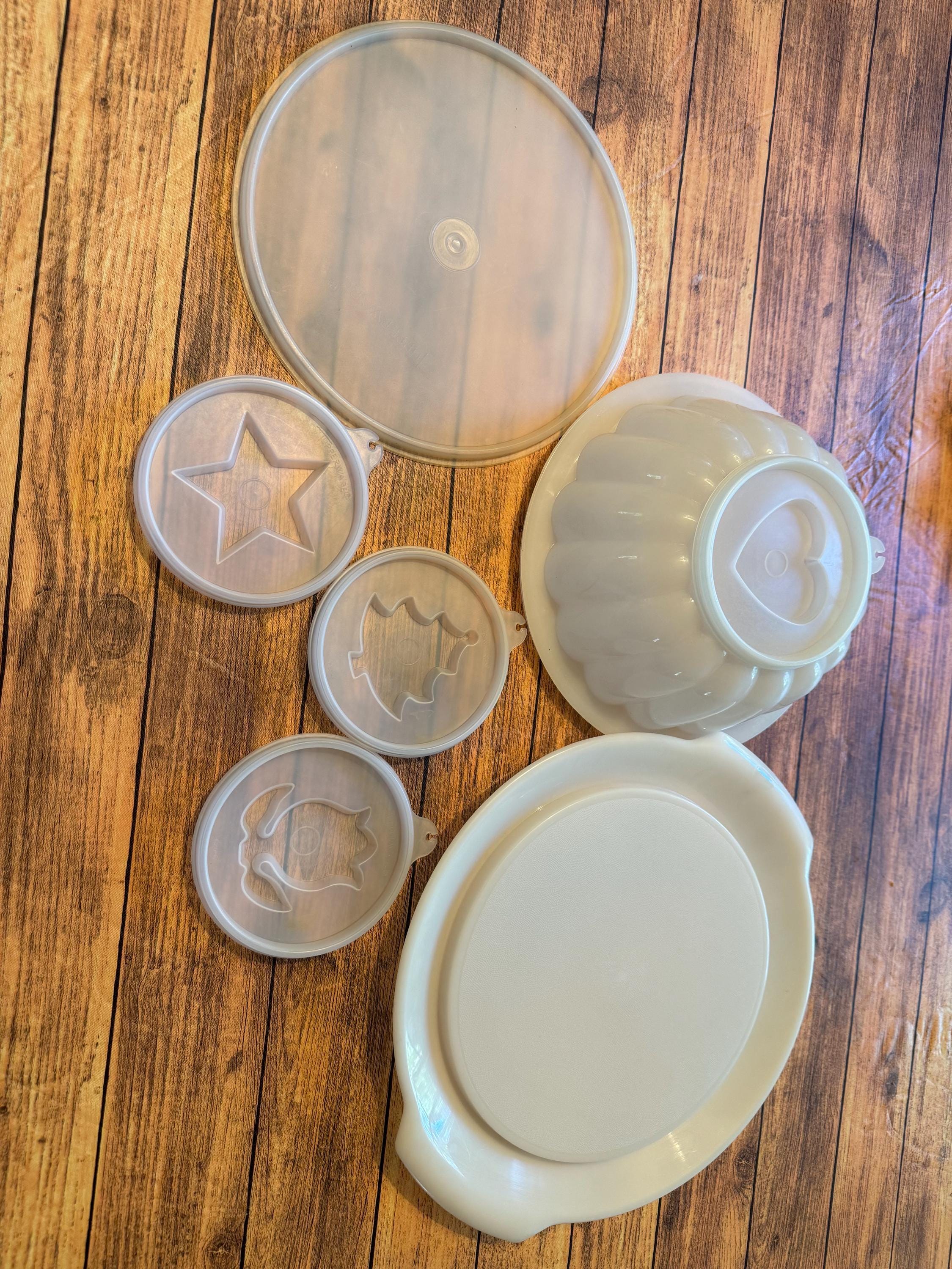 A set of Jel-N-Serve Tupperware jello mold. The Jello mold, known as the Jel-N-Serve, was first introduced in the 1960 by Tupperware. It became popular during that decade and was featured in Tupperware catalogs at least through the 1970s.
