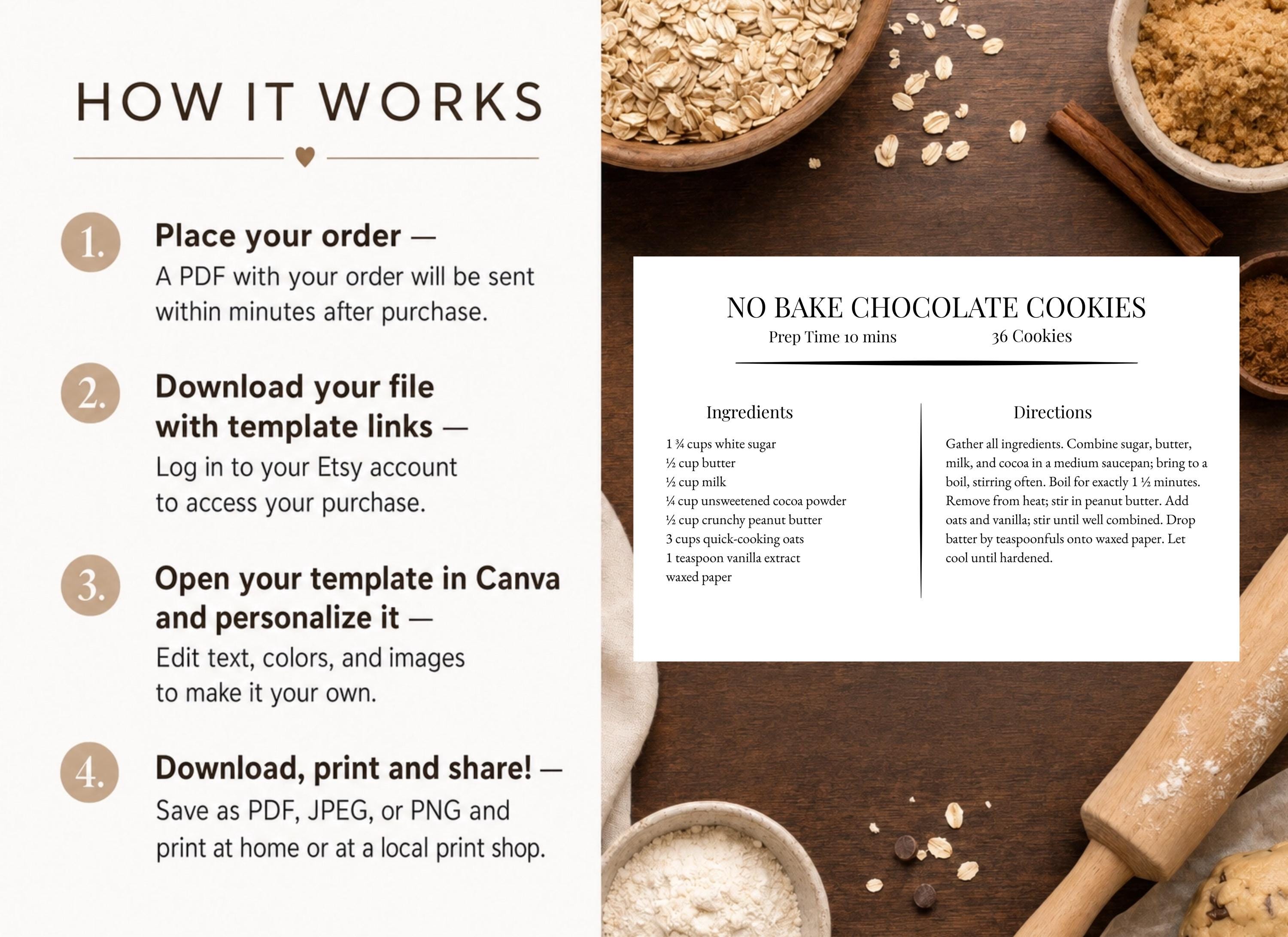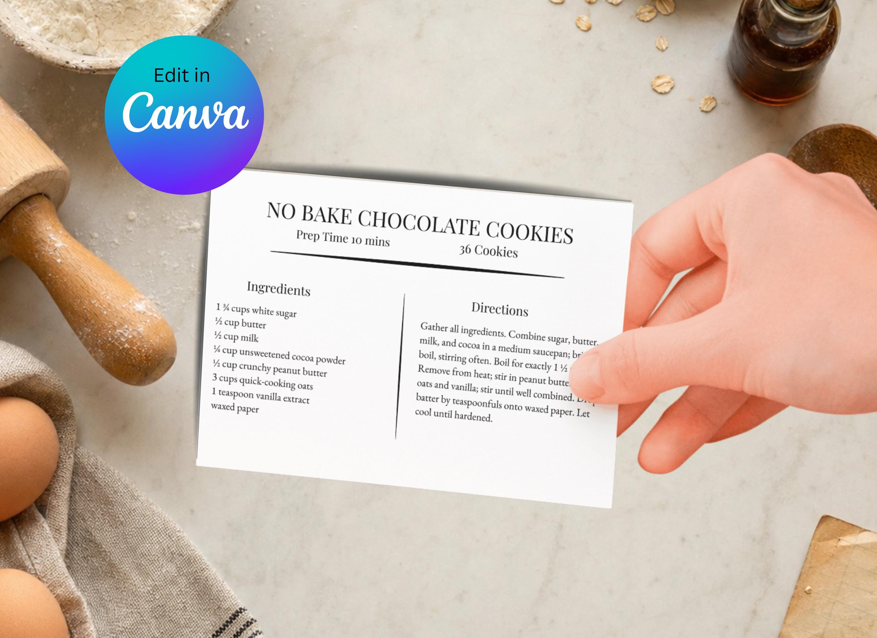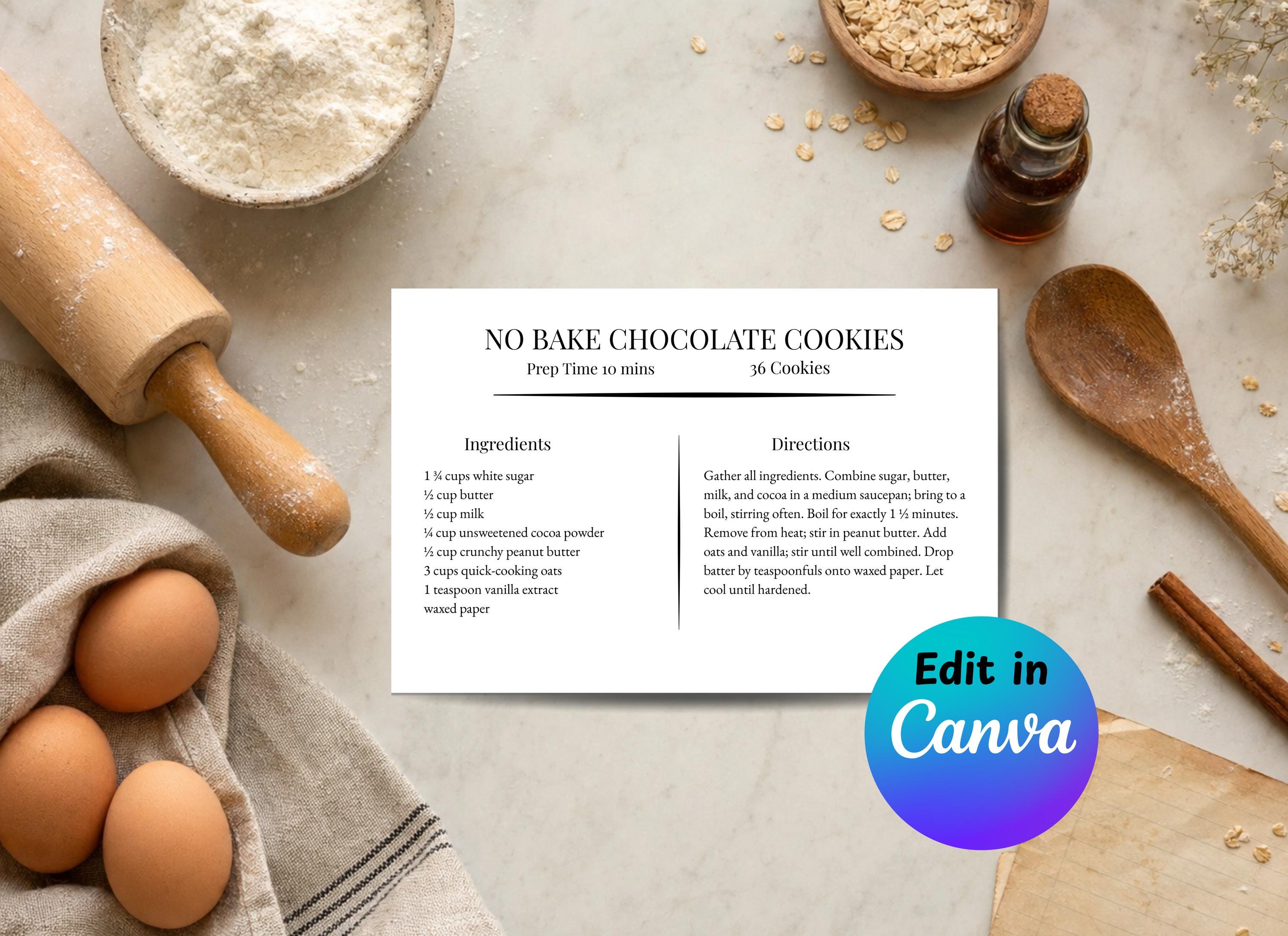 A modern, clean recipe card template you can fully customize in Canva — no design experience needed! Simply click the link, open it in your free Canva account, and personalize it with your own recipes, fonts, and colors in minutes.