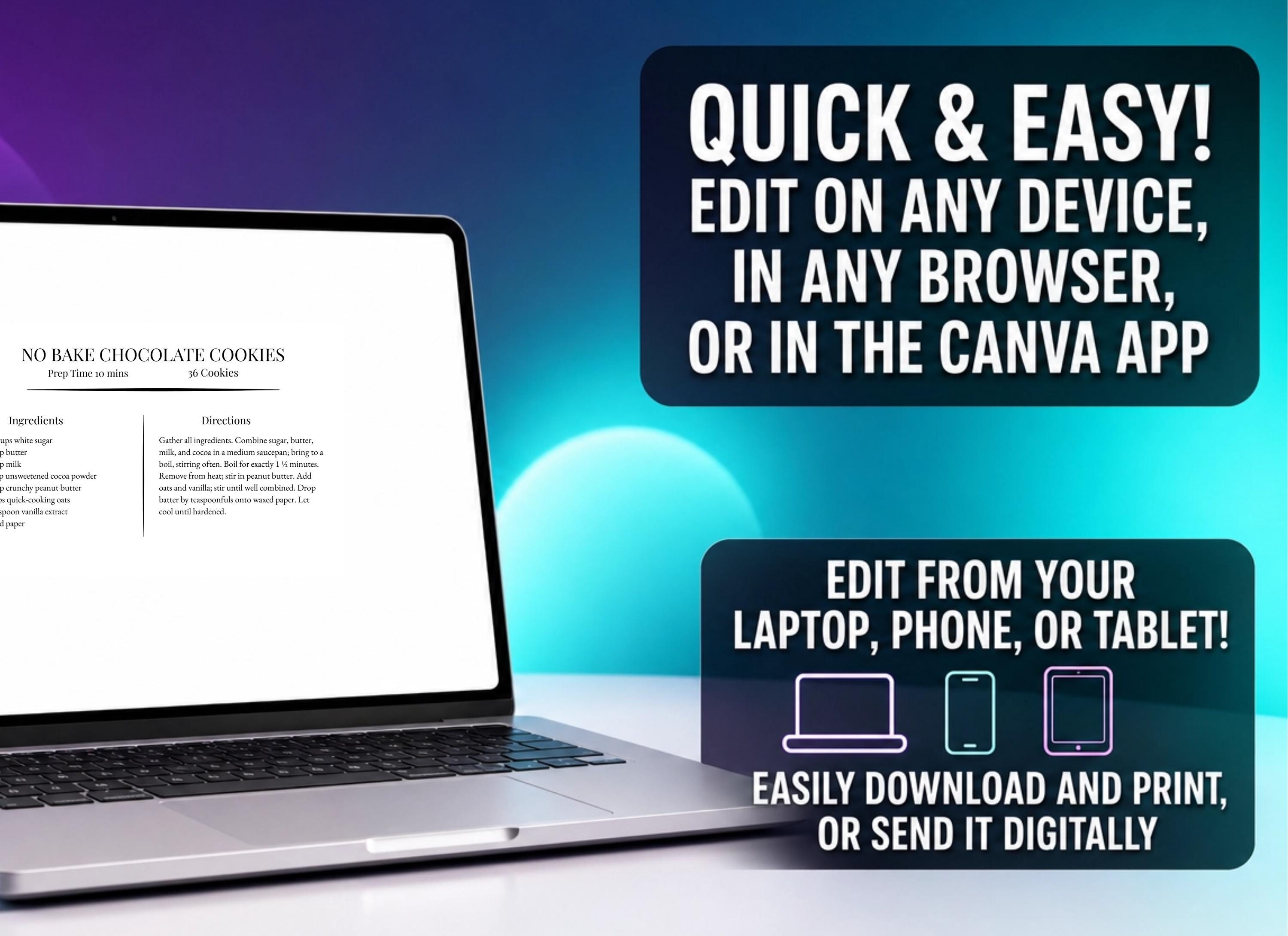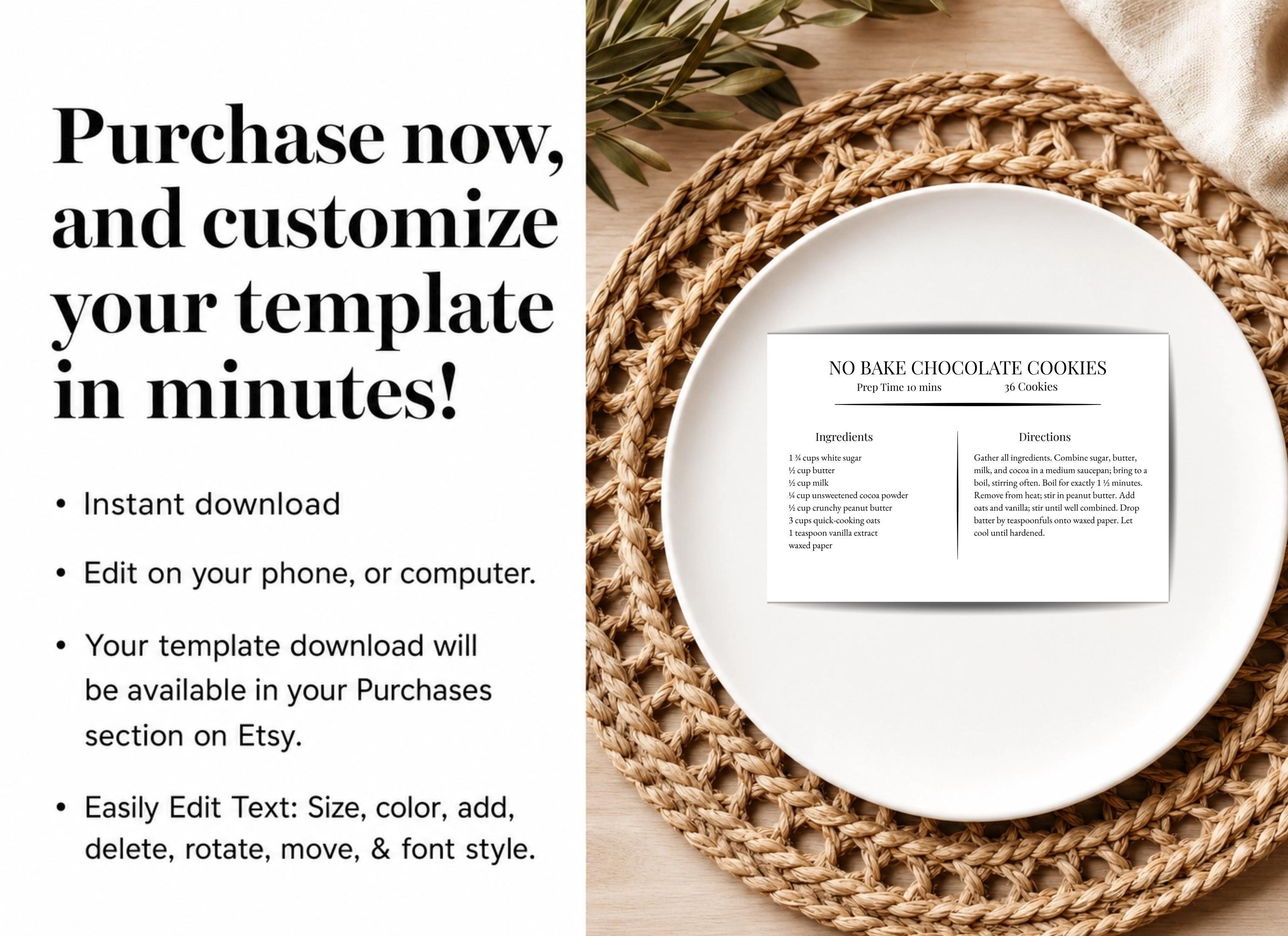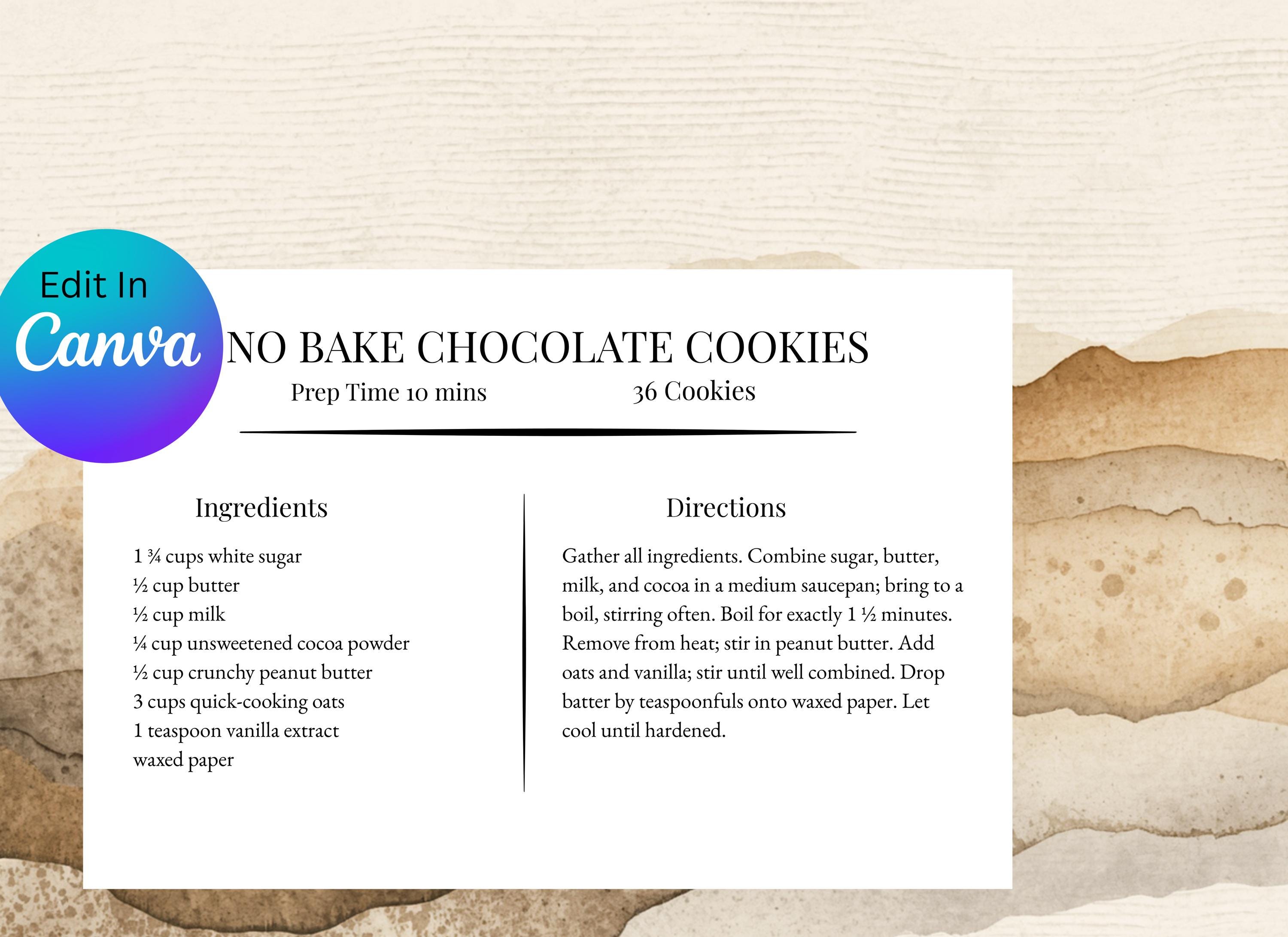 A modern, clean recipe card template you can fully customize in Canva — no design experience needed! Simply click the link, open it in your free Canva account, and personalize it with your own recipes, fonts, and colors in minutes.