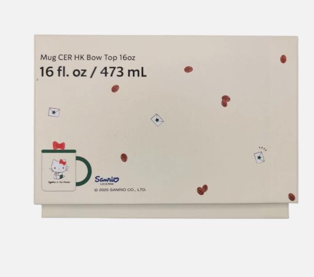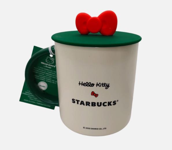 NIB Starbucks × Hello Kitty 2025 Limited Edition Ceramic Mug with Green Lid & Signature HK Red Bow Topper 16 Oz NEW IN BOX
