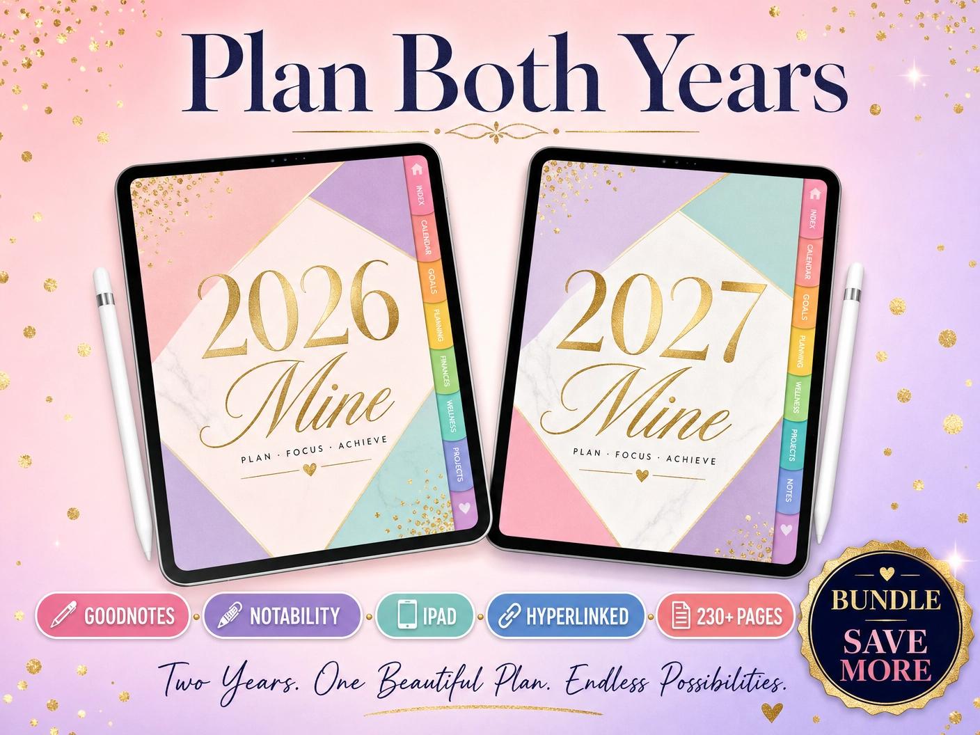 Your purchase includes TWO complete digital planners — one for 2026 and one for 2027: