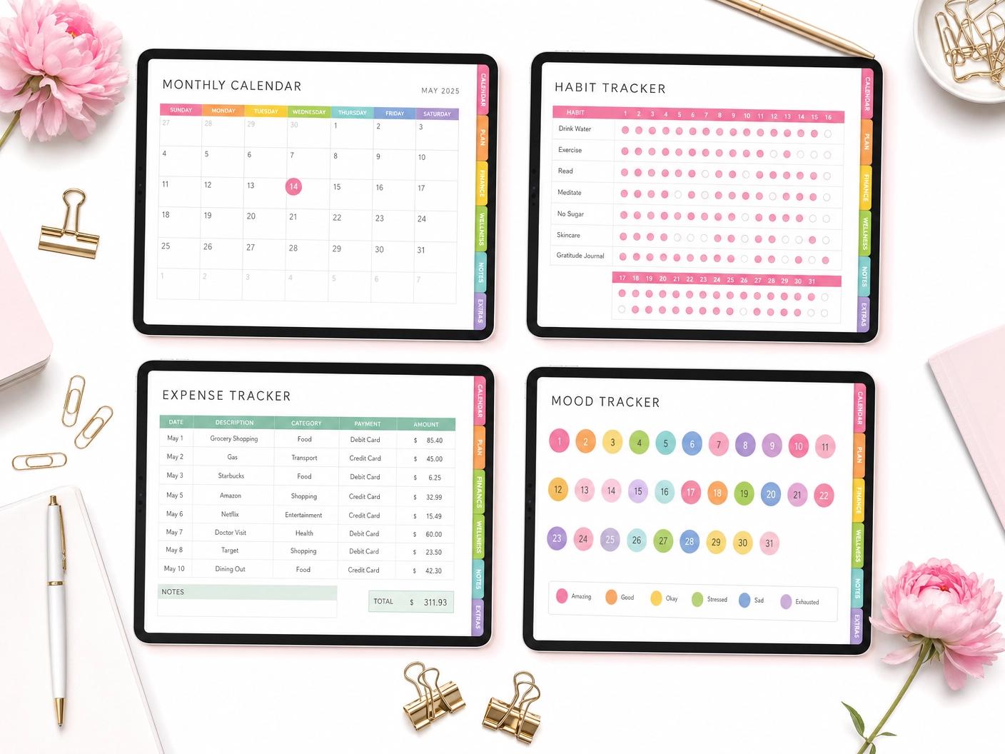 This all-in-one digital planner was designed to help you stay organized, balanced, and productive — without the overwhelm. With bright, feminine colors and a clean minimalist layout, it's as beautiful to look at as it is to use.
